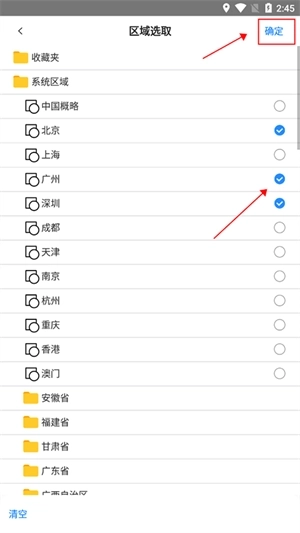 4、接着在区域选择界面勾选你所需的区域(支持多选),勾选完成后点击确定按钮