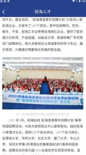 2.前海人才环境介绍、就业岗位查看申请、网上办事服务查看等