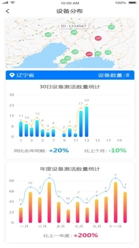 1.为了增强企业对于棚联智能设备销售渠道的管理,“棚联管家”为企业用户集成了后台管理与数据统计的功能。