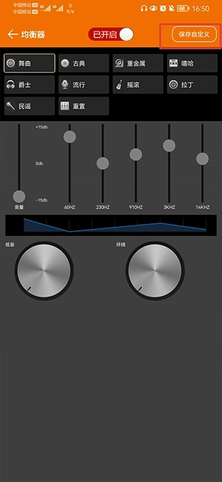 三、依据个人喜好对各个频段的参数进行调节,调节完成后保存自定义配置,该配置即可生效。