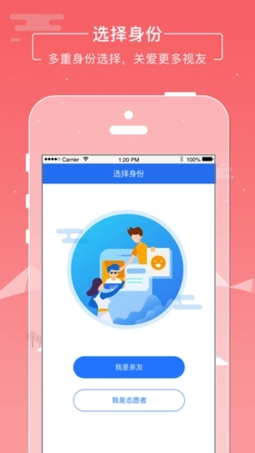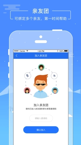 【亲友团】作为视障人士亲友们,可以设置多个亲友手机绑定同一个视障人士,当他发起求助呼叫,亲友第一时间接收到。亲友多了一个好助手。