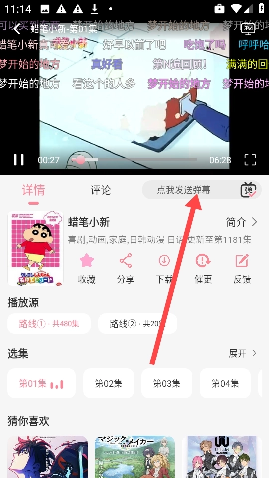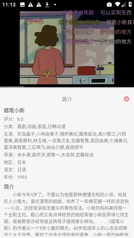 2、挑选任意一部你想看的动漫并开始播放,这里以经典作品《蜡笔小新》为例来进行演示。