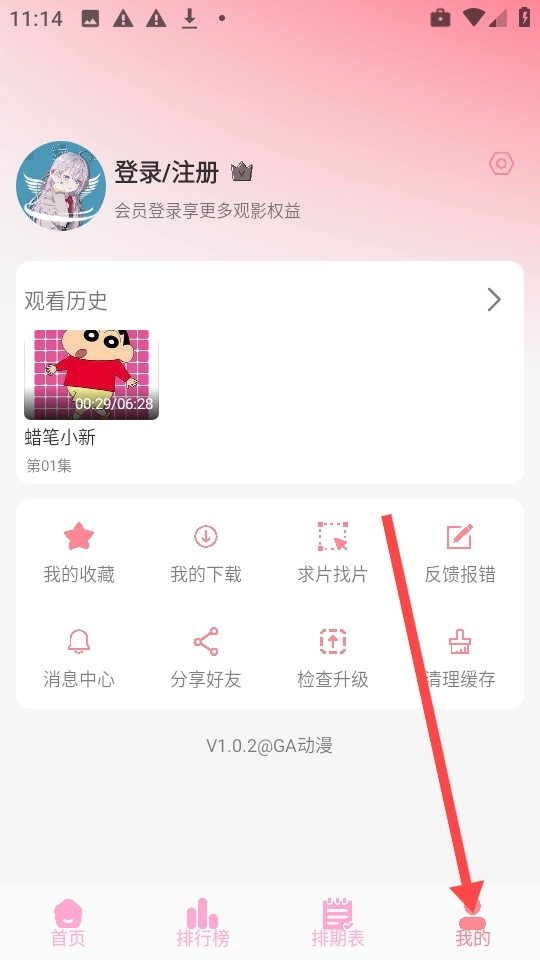 1、启动GA动漫应用后,点击底部导航栏最右边的“我的”个人主页入口。