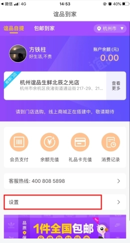 1、首页点击【谊品包邮到家】,就能看到个人资料了