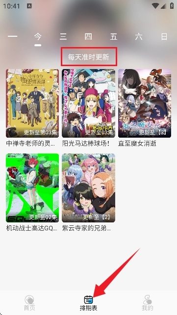 进入排期表专区,能清楚了解每天各时段更新的动漫剧集,知晓最新进展,不错过任何一集的更新提醒。