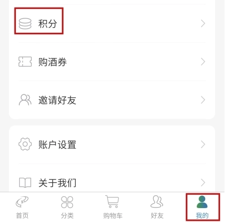 2、进入积分页面后,使用积分兑换购酒券,如此方可获得购买白酒的资格;