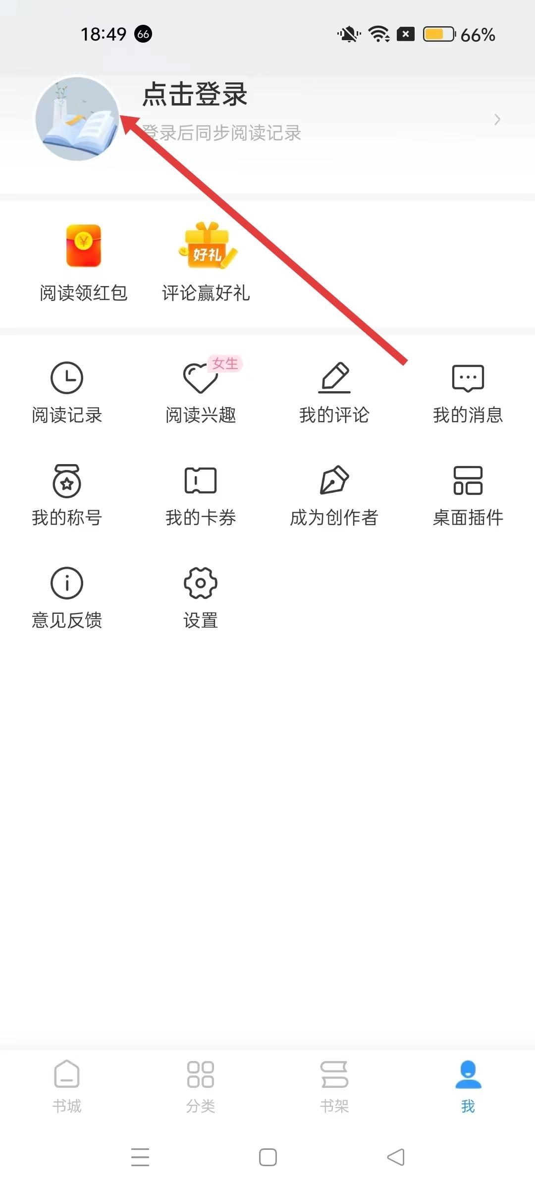 1、进入“我的”界面,能看到登录区域,点击该区域即可启动登录流程;登录成功后,不仅能同步阅读记录,还可以参与阅读领红包、评论赢好礼等各类活动。