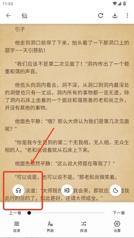 2.点击左下角的耳机按钮。即可进入听书界面。