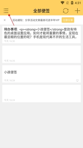 小孩便签具备辅助用户管理待办、提高工作效率的作用,要是用户不清楚如何展示自己的待办事项,可以查看下方的操作步骤,这样能让待办显示更便捷,而且每完成一项任务就能标记确认一个待办事项。
