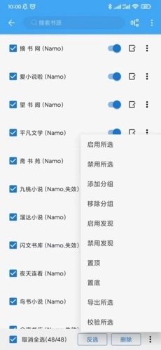 打开发现页面,这里全都是书源,有各大热门的书源,刚安装的时候只显示10个左右,可以去书源管理里面添加,选择后勾选启用发现即可。