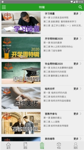 2、特辑板块:是与课程内容相配套的专题系列,像开学周专题、毕业周专题、培灵会专题等都属于这一范畴。