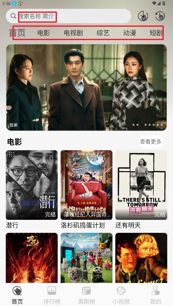 2、首页可根据推荐、分类或直接搜索想看的剧集。