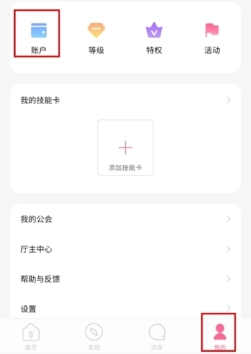 1、在我的页面中点击账户按钮;