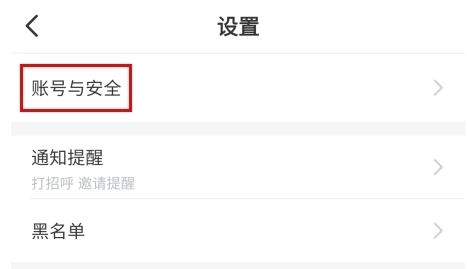 2、在设置页面中点击账号与安全按钮;