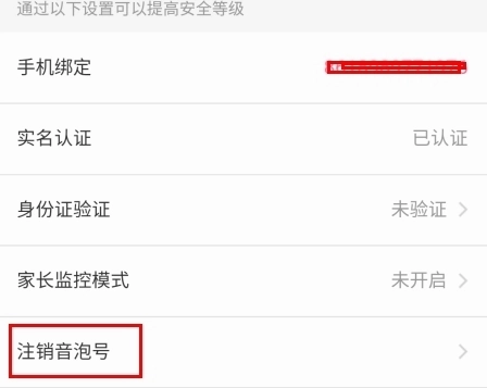 3、在账号与安全页面中点击注销音泡号按钮;