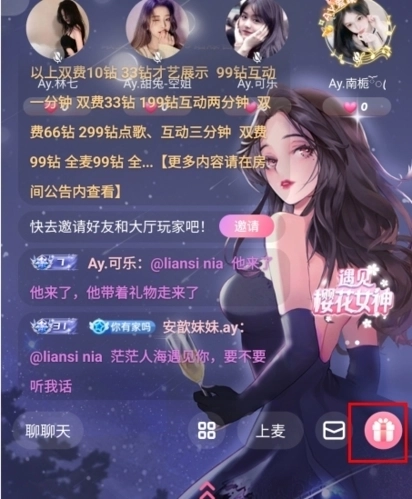 2、在房间中点击右下角的礼物按钮;