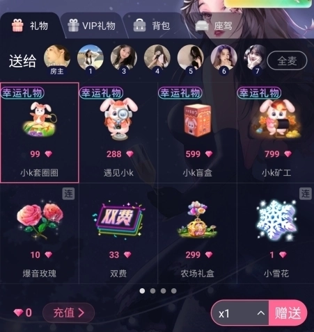 3、选择要赠送的礼物,点击赠送按钮。