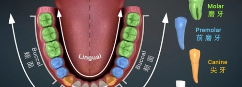 正畸—不同材质的牙箍、舌侧矫正器、牙周夹板、正常牙合、正常牙合、下颌反牙合。
