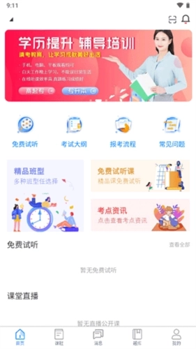 清考教育是洛阳清考教育科技有限公司开发的一款手机在线教育学习软件,平台课程资源丰富,师资力量优质,能为用户提供更多丰富且优质的学习内容。依托大数据技术,可精准推荐用户感兴趣的学习知识点,是远程教育互动的优质平台。即便足不出户,用户也能与老师、同学自由交流沟通,随时开启学习之旅。想要提升学历的小伙伴,不妨来体验一番!