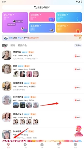 1、打开软件,点击底端的“交友”选项,选择需要添加的好友。