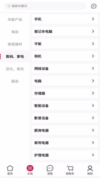 4、多样的分类中心,分类中心划分农副产品、食品、家居建材以及服装等类别;