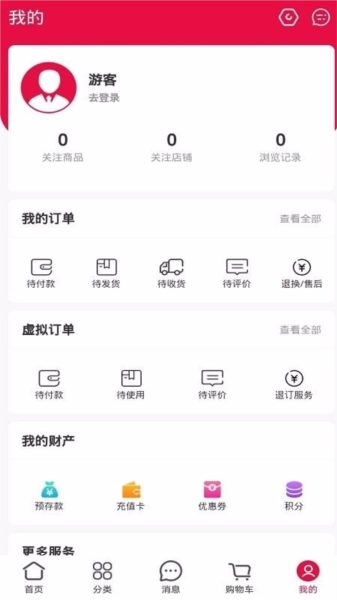 3、丰富的个人财产管理工具,该财产管理栏中有预存款、充值卡以及优惠券和积分管理功能;