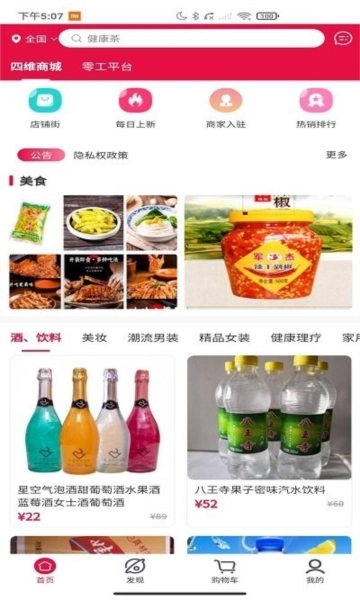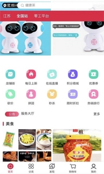 6、推荐许多美食产品资源,首页开设美食专区并推荐各种土特产美食商品;