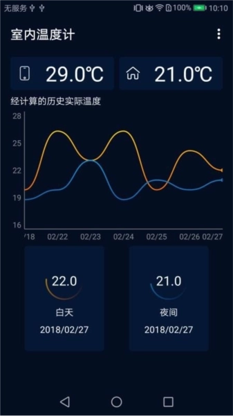 安装这款软件后,您就能用手机监测室内环境温度,还能查看历史温度的分析图表;软件会实时为您展示具体温度数值,涵盖手机自身温度与室内环境温度,而且温度单位支持自定义设置和切换;您也可以随时查看白天与夜间的温度差异,相关数据会及时更新,同时显示对应的时间和温度值;系统会自动统计并保存历史温度信息,通过折线图呈现数据变化趋势,并用不同颜色区分白天和夜间时段,让您对数值变化一目了然;此外,软件还提供丰富的设置功能,您可以根据喜好自定义软件主题、文字颜色、图标样式等。