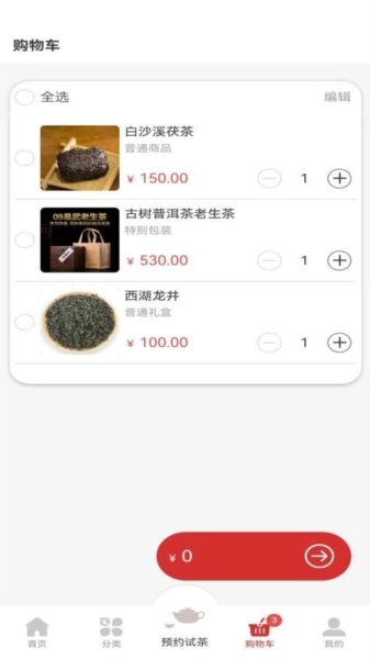 提供购物车功能,用户可将心仪的茶叶全部加入其中,便于统一采购下单。