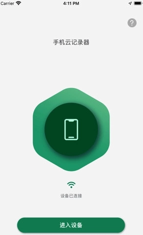 2、手机记录仪连接成功后,打开“A车联”应用,点击底部的【设备】选项,再选择【进入设备】,此时就能看到实时视频画面;若未显示画面,可点击【连接设备】按钮重新连接。