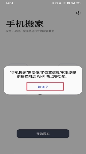 5、此外,该功能还需获取位置信息权限以实现扫描附近WiFi热点等操作,请点击“知道了”。