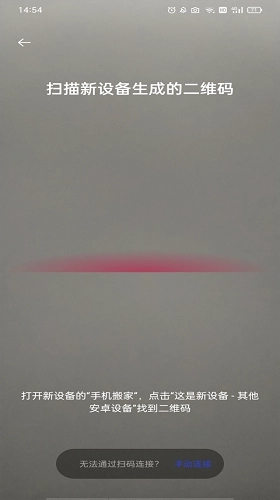 6、最后会弹出一个扫描框,你需要在新设备上打开一加搬家,点击“这是新设备,其他安卓设备”找到对应的二维码,然后将扫描框对准该设备生成的二维码,这样就能完成数据转移了。