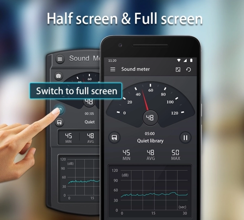 SoundMeter是手机上的一款专业级环境噪音分贝值检测应用,中当声音经过分贝测试仪测量后,它将以数字形式显示声音的强度。操作简单,只需要通过手机麦克风即可测量,测量结果精准,能够显示最小最大分贝值,有需要的可以来使用。