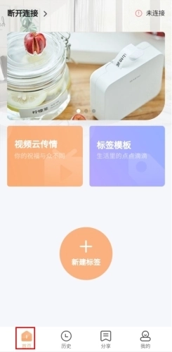 1、首页页面:该页面中主要功能是新建标签和连接打印机,用户只需要按钮进入相关页面就可以操作了;