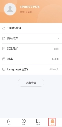 2、历史页面:该页面中用户是可以查看到之前打印的内容和草稿箱中的内容;
