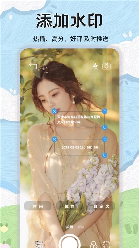 3、水印可自动更新用户的实时日期、天气等信息,让您更好地记录生活。