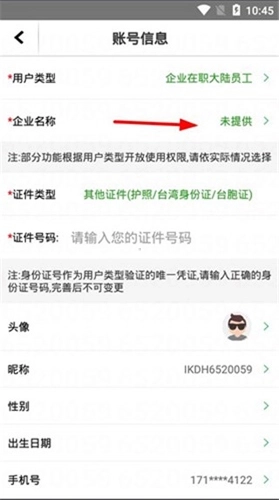 3、若用户选择的用户类型为非富士康员工,那么企业名称这一选项将无法选择,此时我们需要点击用户类型进行相关操作。