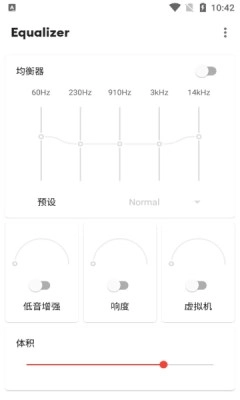 equalizer均衡器是一款可以随意调节音响效果水平的立体音乐软件,又称为Equalizer+、Equalizermusicplayerbooster,是适用于Android的最佳一体式音乐播放器、均衡器和低音增强器,提供卓越的高清音质。软件注重质量、免费且易于使用,提供美丽友好的界面,采用专业7频段均衡器改善用户的音乐,并享受强大的低音音量放大器。用户在软件中可以随心所欲的按照自己的喜好来调节音乐的播放,杜比音效,声音平衡等主要功能统统有,还能进行预定义设置。