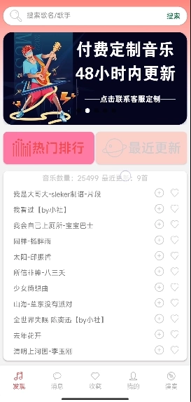 3、紧接着我们可以搜索歌曲,还可以收藏歌曲;