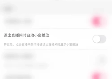 3、在设置界面中,点击“退出直播间时自动小窗播放”右侧的圆点按钮。
