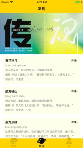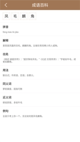 软件里的每个成语都配备了对应的词义解析,支持在线查询。