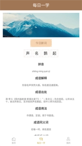 3、此外,点击“每日一学”,你还能看到系统自动推送的成语知识呢。
