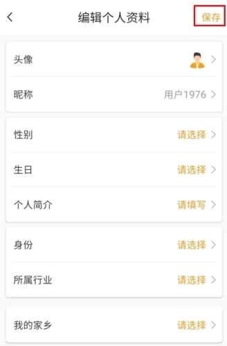 2、在编辑个人资料页面中可以编辑信息,以后也是可以修改的,点击右上角的保存按钮。