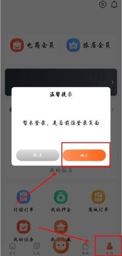 1、首先打开并进入【我的】界面,若未登录,会弹出【温馨提示】,此时点击确认选项即可;