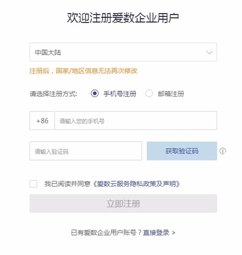 我们打开网页搜索并进入爱数anyshare,完成注册后还需以管理员身份创建一个企业。