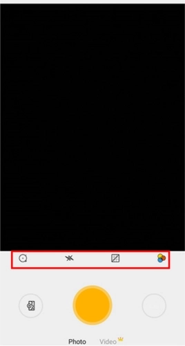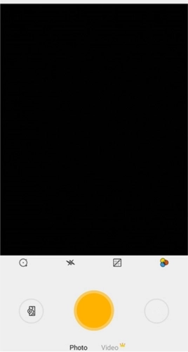 3、点击正中间的黄色圆形按钮即为快门键,点击该按钮即可开始拍摄;快门键的上方是基础工具栏,从左至右依次为定时拍摄、闪光灯、网格以及滤镜选项。
