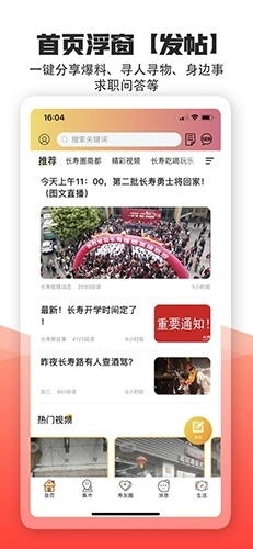 长寿圈是一款专门面向长寿市民的本地资讯服务软件。每天,数十万同城用户都会在这里讨论本地热点事件、分享最新八卦消息、推荐身边的美食、展示生活中的精彩照片,还能参与各类线上线下的聚会活动。在这里,你可以随时发现身边有趣的人,主动向他们打招呼。即使足不出户,也能一键知晓长寿的大小事,第一时间掌握最新的本地新闻。感兴趣的用户不妨来体验一下吧!