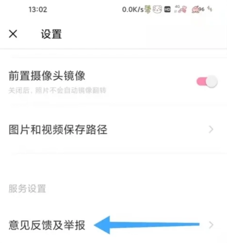 然后找到左上角三条竖线的图标,点击图标,然后找到【相机设置】,点击进入,之后选择【意见反馈及举报】,点击进入。