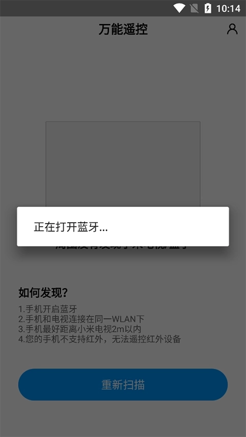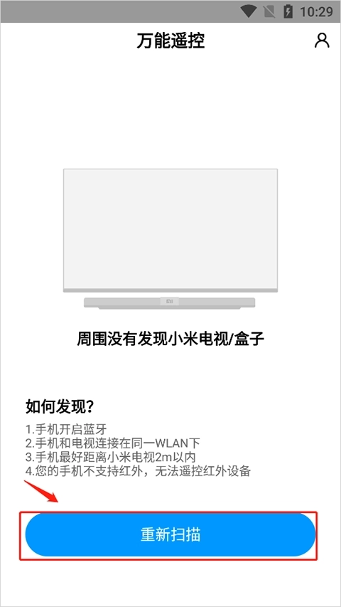 1、小米万能遥控,安装打开之后点击“重新扫描”按钮。