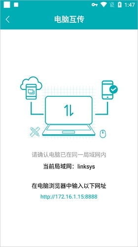 5、之后在电脑浏览器中输入对应网址,即可完成互传。